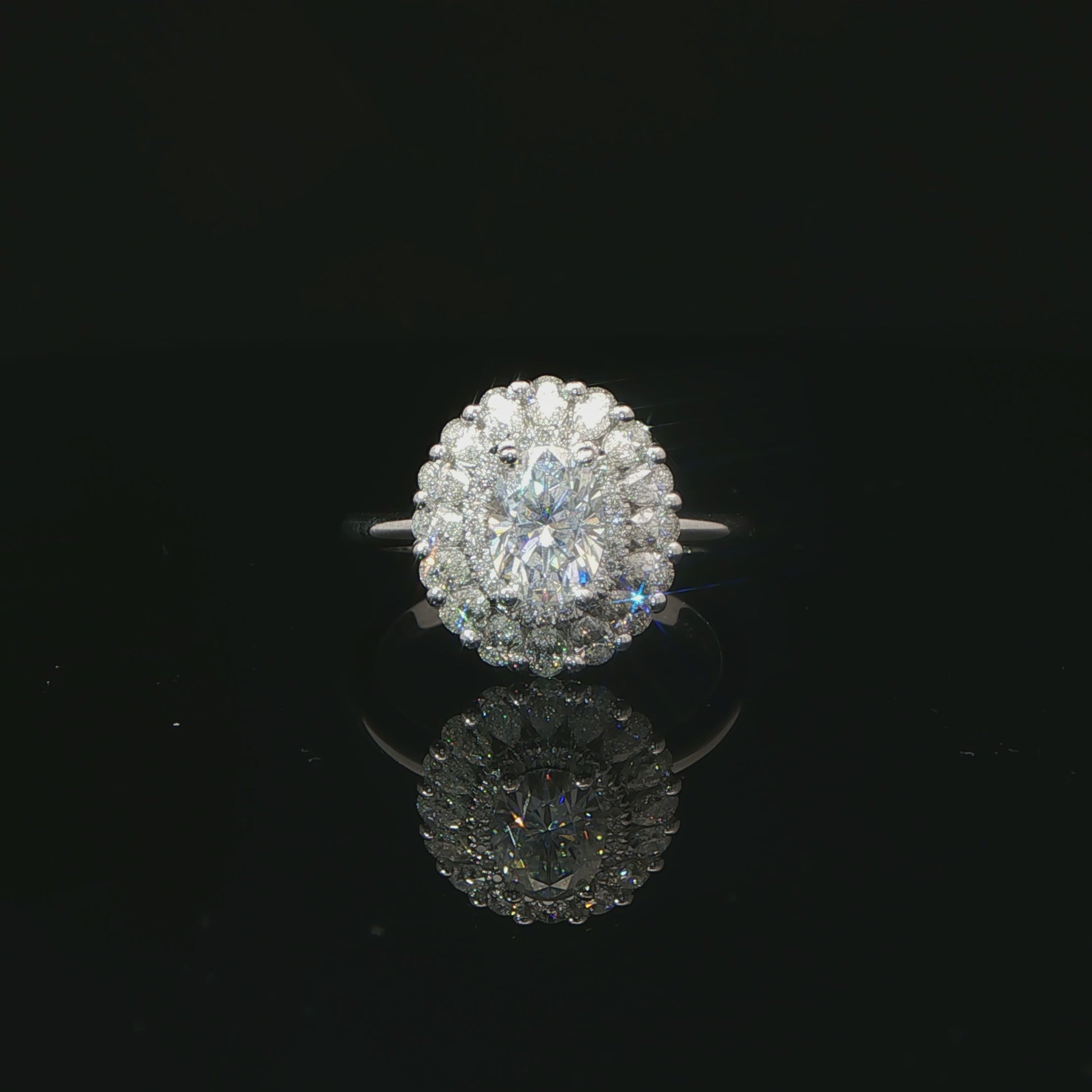 A celebration of love that blooms again and again, The Twin Blossom brings floral elegance to life through its exquisite double-halo design. At its heart rests a deep, mesmerizing gemstone rich in color and emotion surrounded by two radiant tiers of brilliant diamonds. Each halo unfurls like concentric petals, creating a lush, layered bloom that symbolizes growth, devotion, and the beauty of connection.